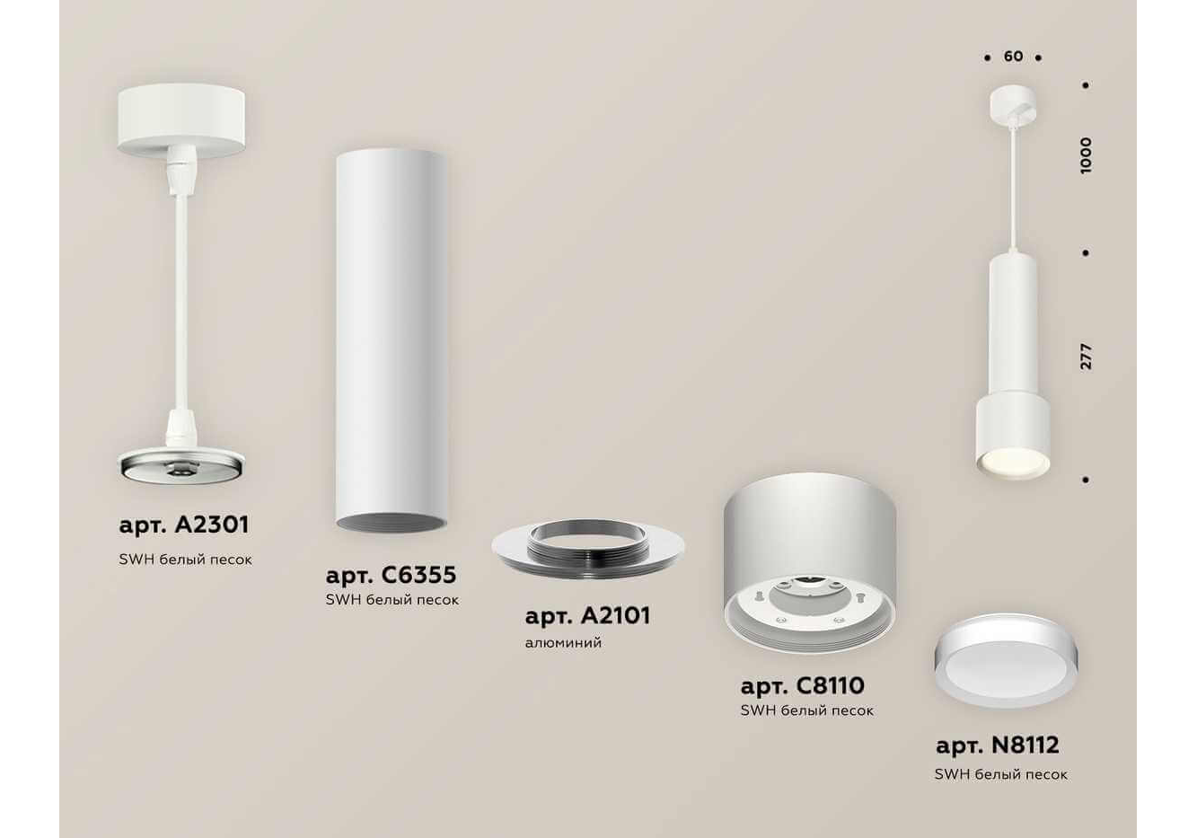 Комплект подвесного светильника Ambrella light Techno Spot XP (A2301, C6355, A2101, C8110, N8112) XP8110001