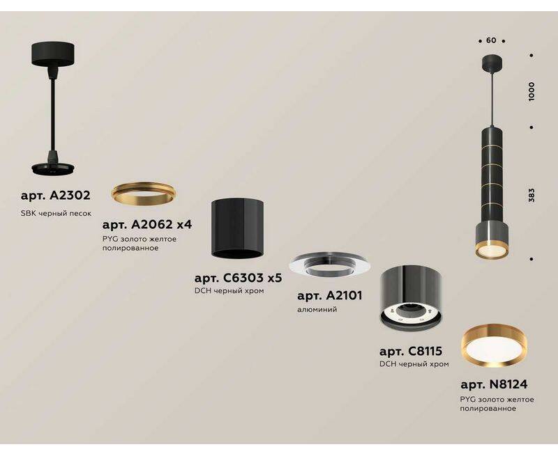 Комплект подвесного светильника Ambrella light Techno Spot XP (A2302, A2062х4, C6303х5, A2101, C8115, N8124) XP8115010