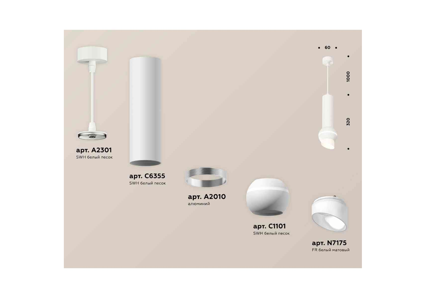 Комплект подвесного светильника Ambrella light Techno Spot XP1101012 SWH/FR белый песок/белый матовый (A2301,C6355,A2010,C1101,N7175)