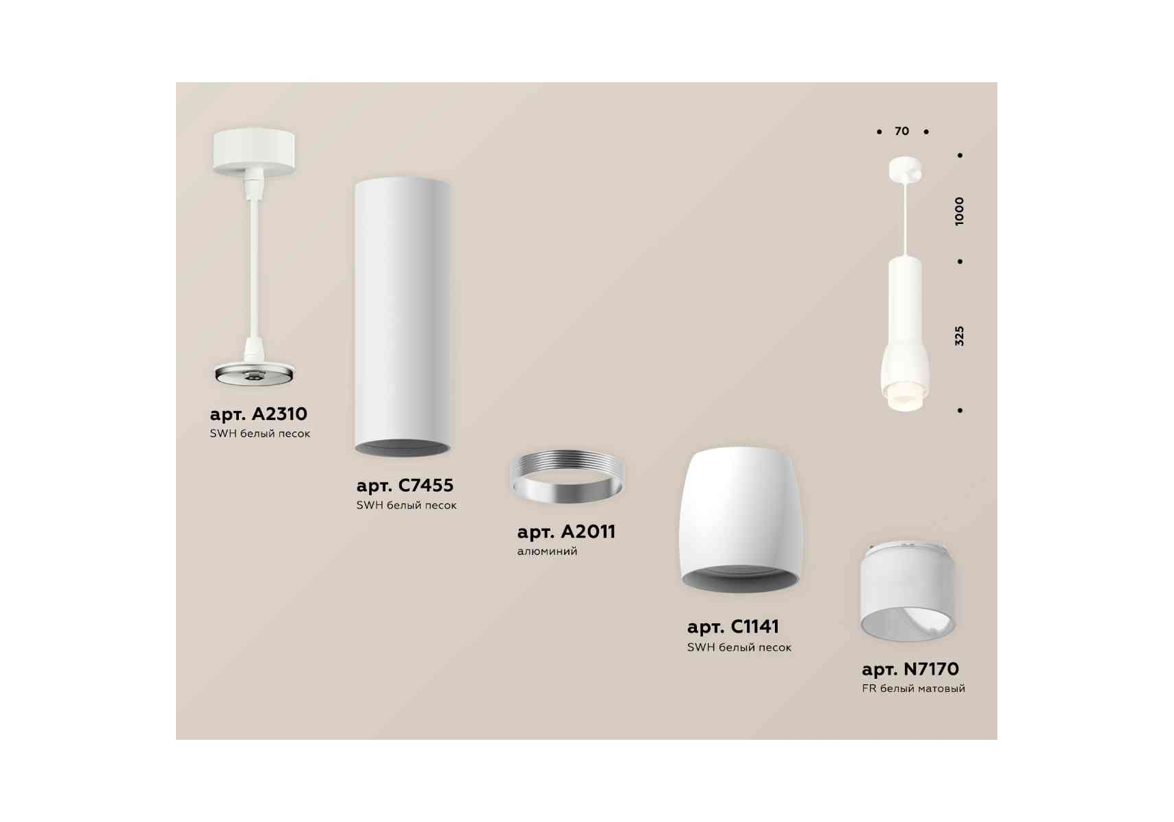 Комплект подвесного светильника Ambrella light Techno Spot XP1141011 SWH/FR белый песок/белый матовый (A2310, C7455, A2011, C1141, N7170)