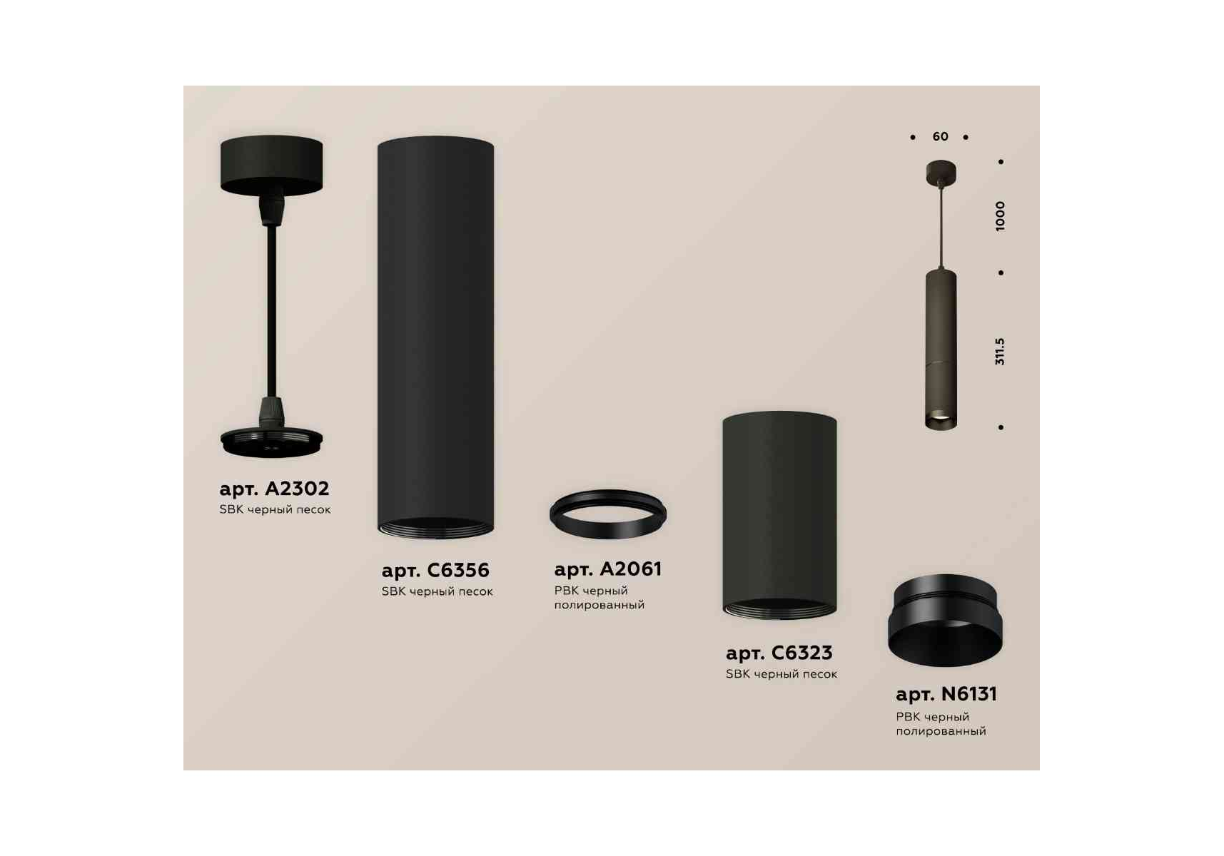 Комплект подвесного светильника Ambrella light Techno Spot XP6323010 SBK/PBK черный песок/черный полированный (A2302,C6356,A2061,C6323,N6131)