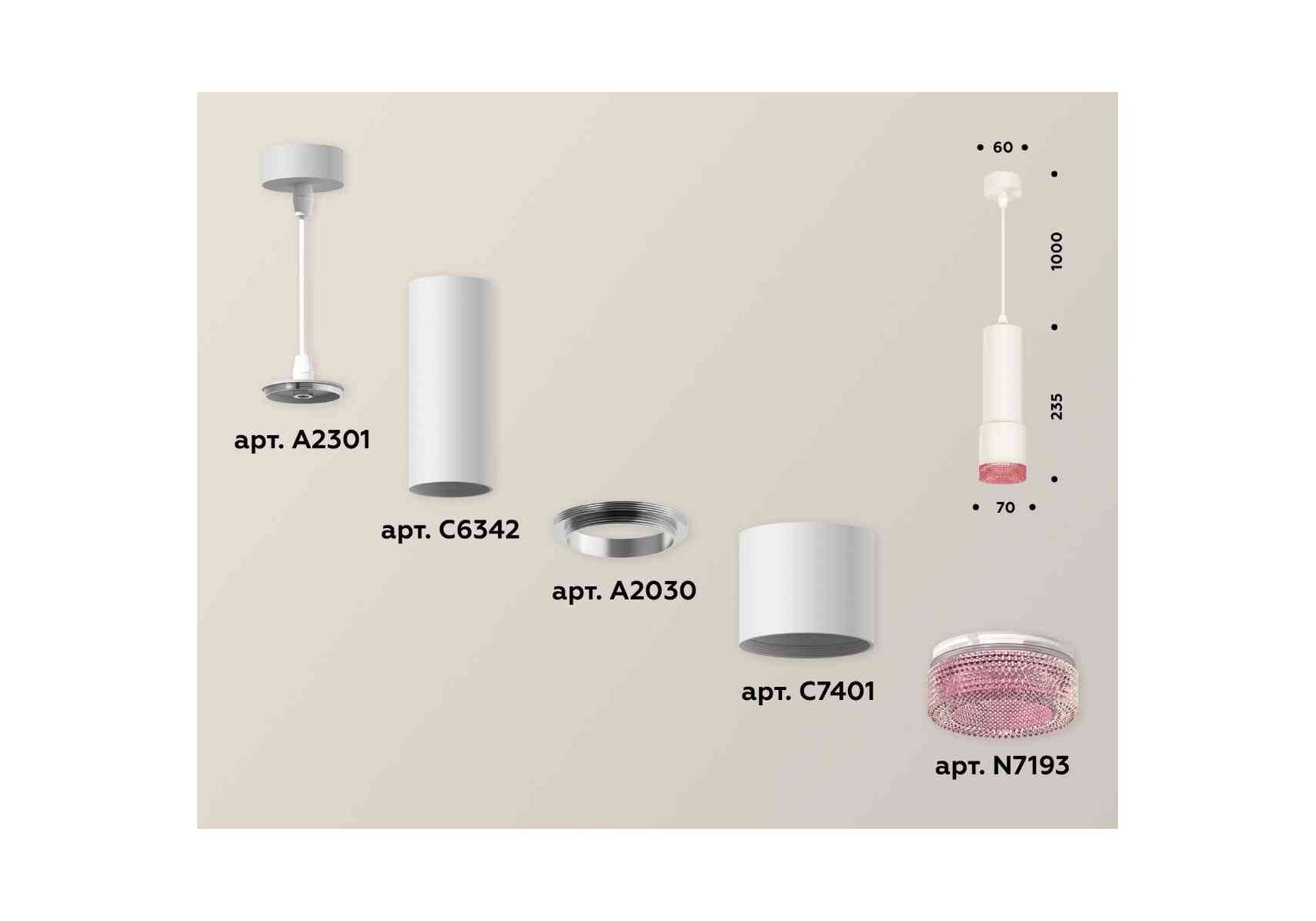 Комплект подвесного светильника Ambrella light Techno Spot XP7401003 SWH/PI белый песок/розовый (A2301, C6342, A2030, C7401, N7193)