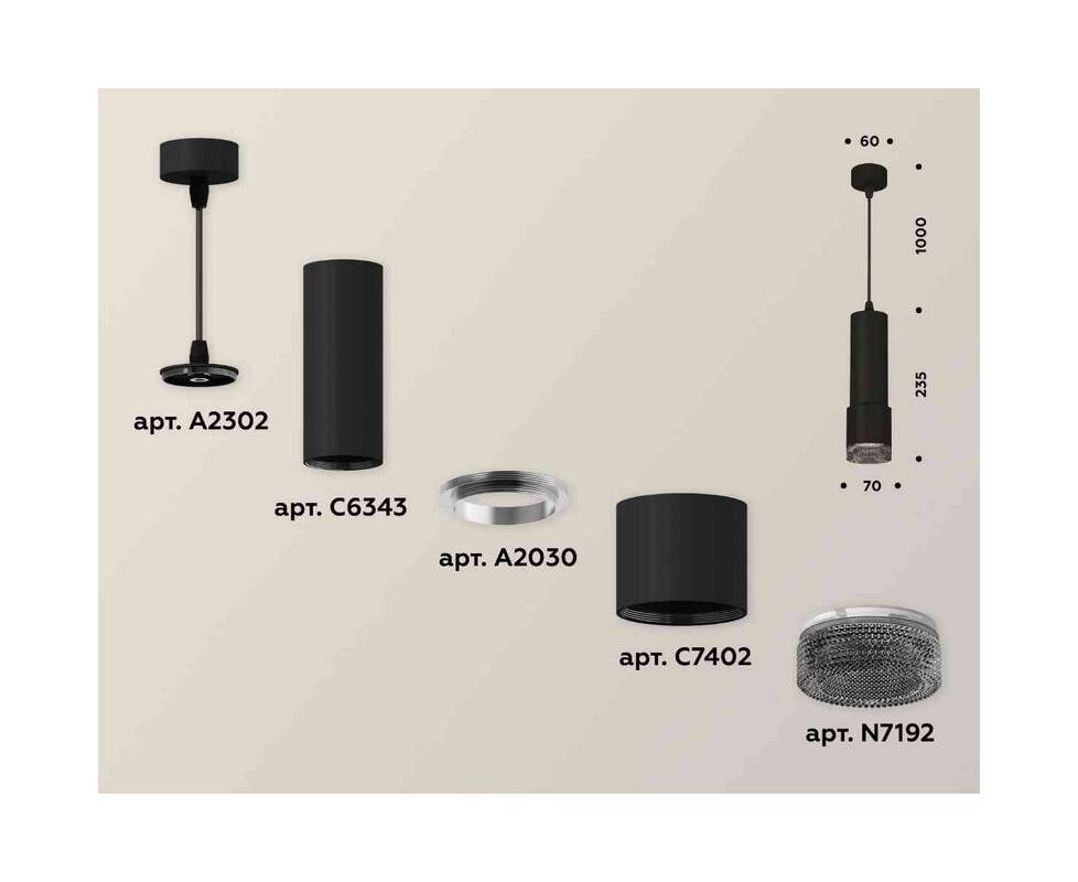 Комплект подвесного светильника Ambrella light Techno Spot XP7402002 SBK/BK черный песок/тонированный (A2302, C6343, A2030, C7402, N7192)