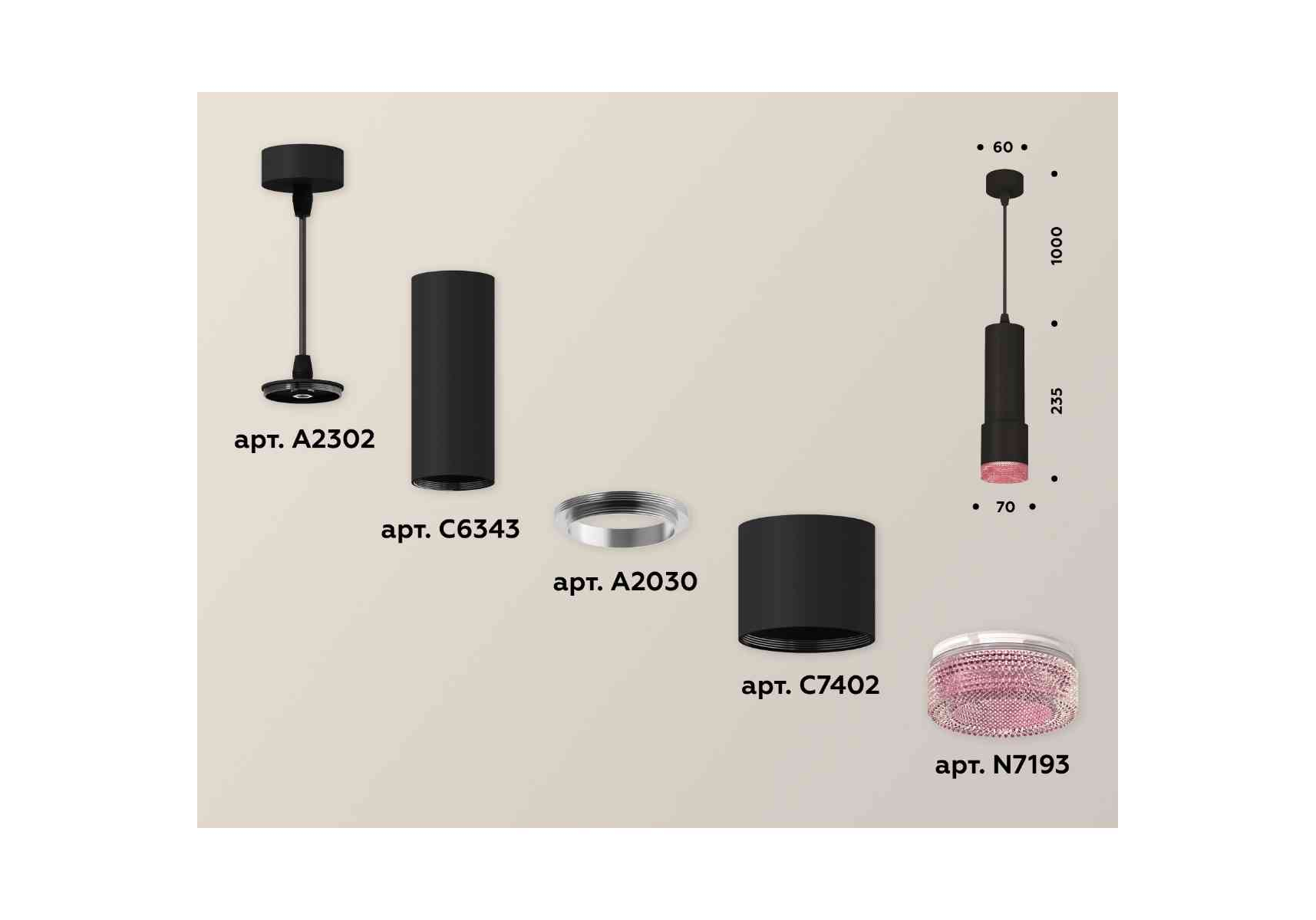 Комплект подвесного светильника Ambrella light Techno Spot XP7402003 SBK/PI черный песок/розовый (A2302, C6343, A2030, C7402, N7193)