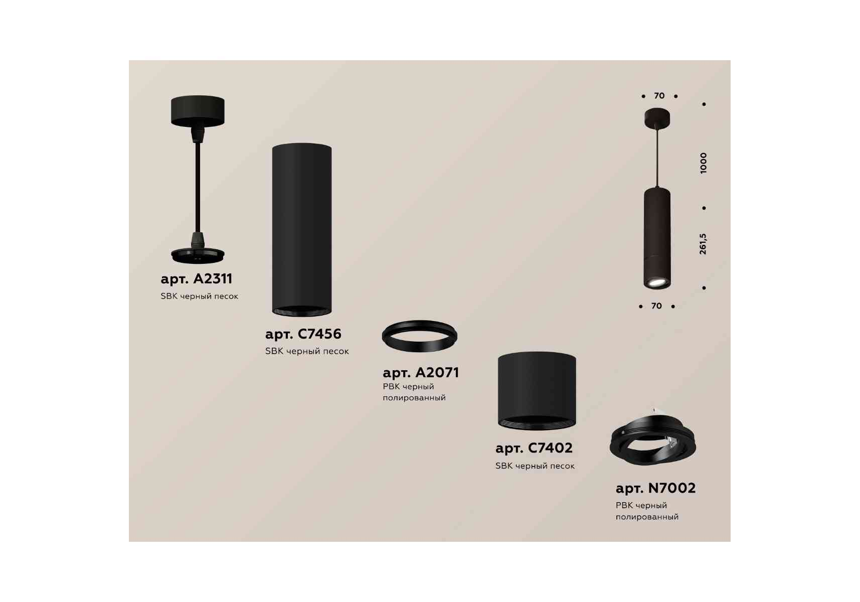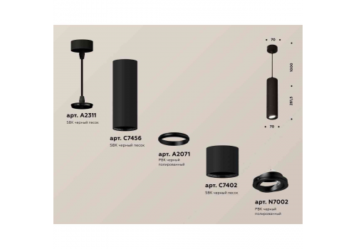 Комплект подвесного светильника Ambrella light Techno Spot XP7402045 SBK/PBK черный песок/черный полированный (A2311, C7456, A2071, C7402, N7002)