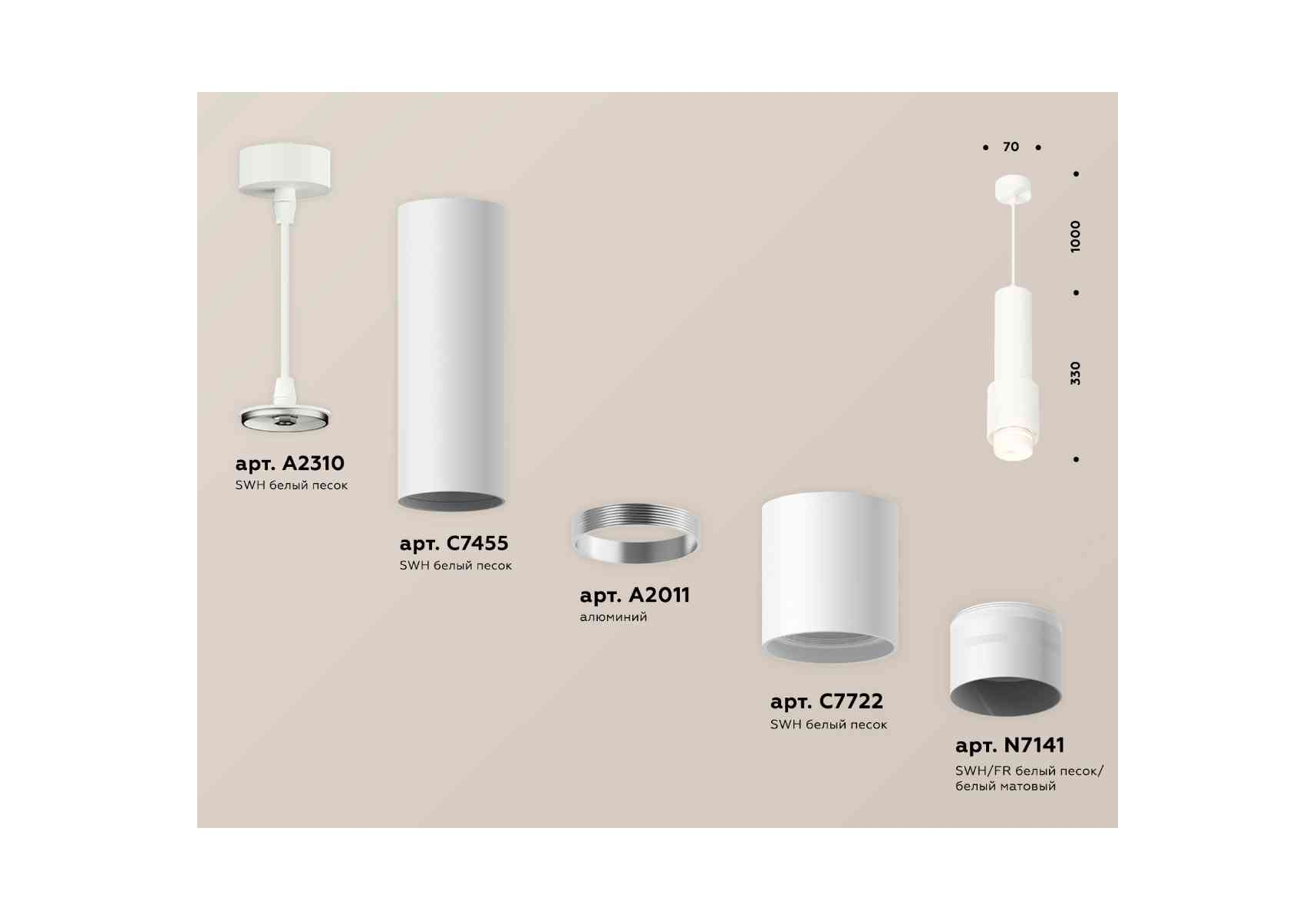 Комплект подвесного светильника Ambrella light Techno Spot XP7722012 SWH/FR белый песок/белый матовый (A2310, C7455, A2011, C7722, N7141)
