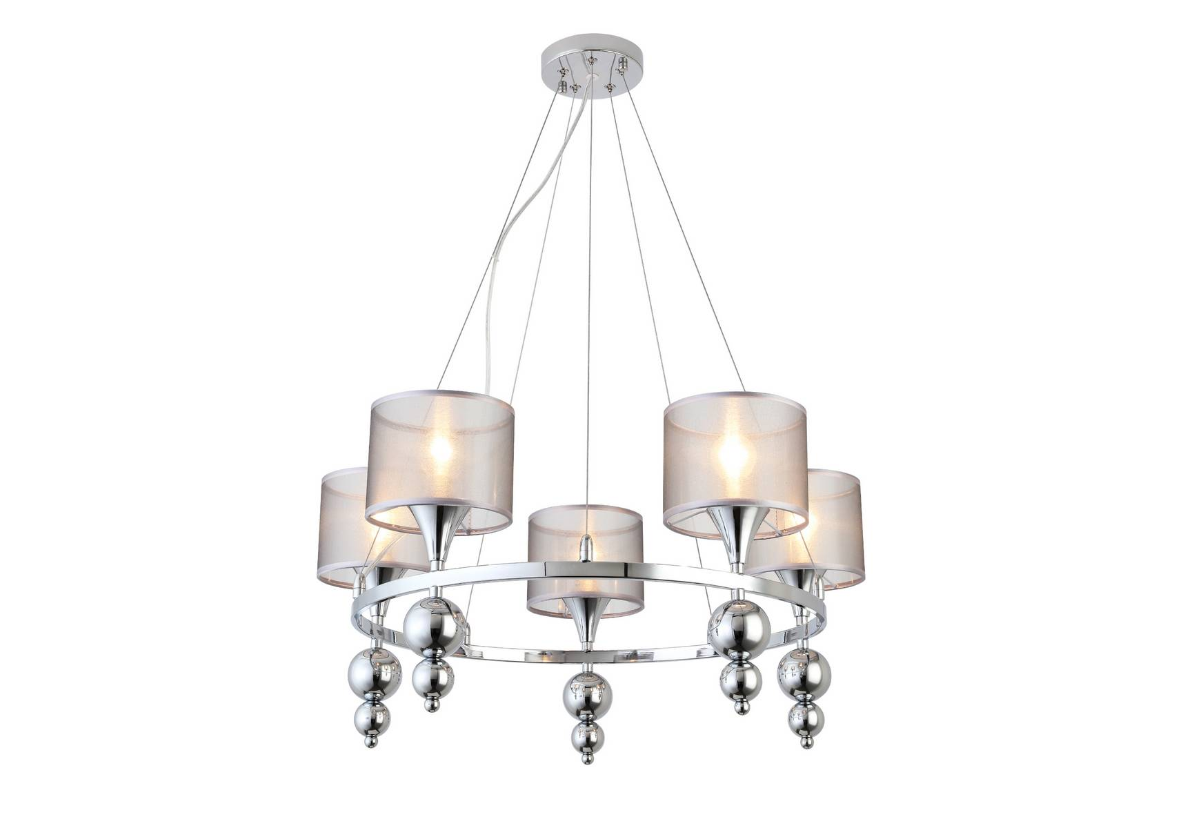 Подвесная люстра SLE107103-05 Pazione от итальянской фирмы Evoluce станет превосходным дополнением интерьера гостиной в стиле модерн. Каркас из металла с хромированным покрытием, 5 ламп с цоколем E14 и серебристые тканевые абажуры придают данной модели необыкновенный внешний вид. Люстра осветит комнату площадью до 10 м2, при использовании рекомендуемых производителем или эквивалентных по световому потоку LED ламп (в комплект не входят). Модель SLE107103-05 Pazione можно устанавливать на натяжной потолок с использованием стандартной монтажной планки. *При установке на натяжной потолок допускается использовать только светодиодные LED лампы. Родиной бренда Evoluce является ИТАЛИЯ. Сборочное производство компании расположено в Китае, однако, это никак не сказывается на качестве продукции. Заявленный производителем Evoluce гарантийный срок составляет 12 месяцев. Подвесная люстра Evoluce Pazione SLE107103-05 будет отличным выбором для покупки в интернет-магазине ГиперСвет. Мы оперативно доставим Ваш заказ по Калуге, Москве или в любой другой регион России.