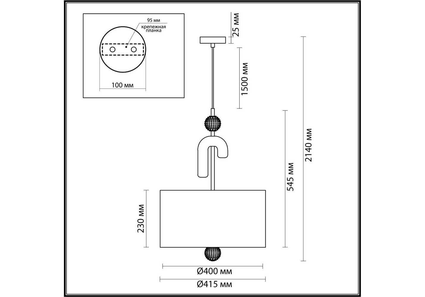 Длина подвеса, мм:
