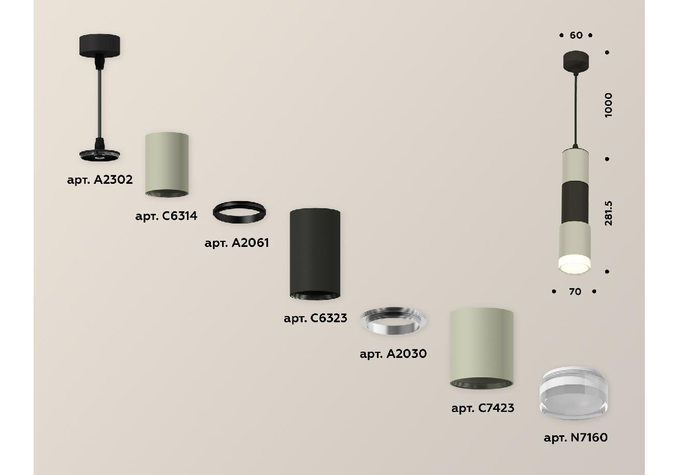 Подвесной светильник Ambrella Light Techno XP7423022 (A2302, C6314, A2061, C6323, A2030, C7423, N716