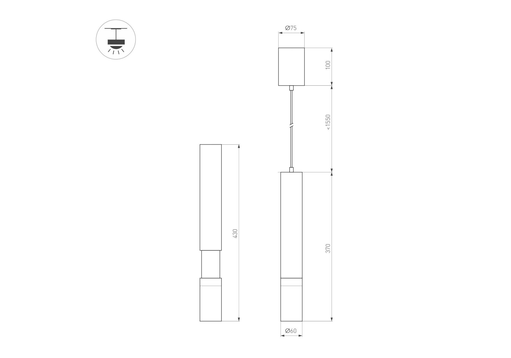 Длина подвеса, мм: