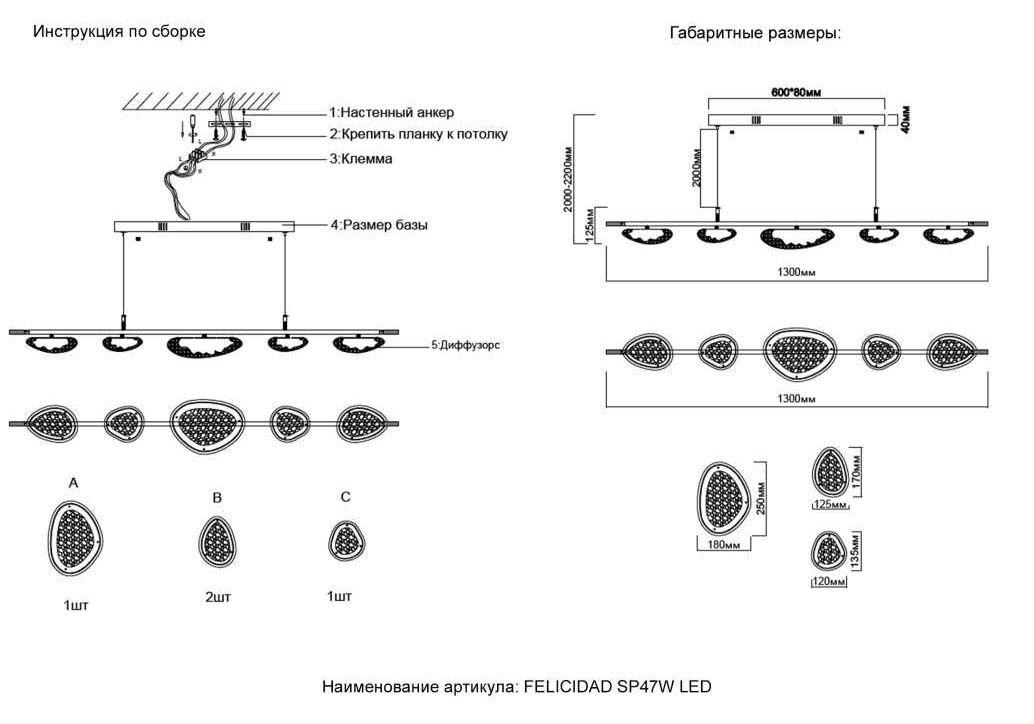Длина подвеса, мм: