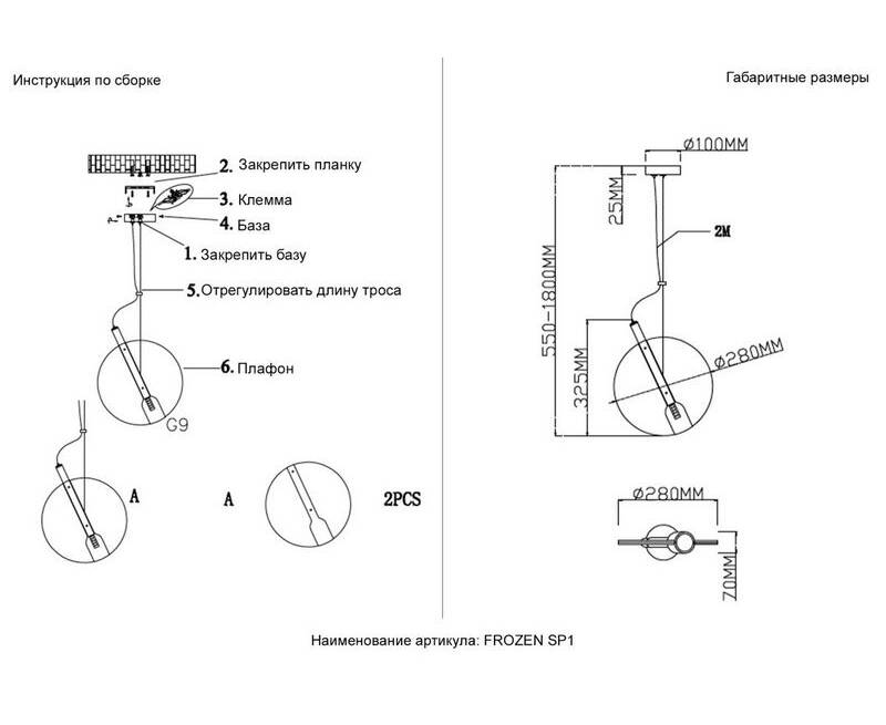 Подвесной светильник Crystal Lux FROZEN SP1 BLACK