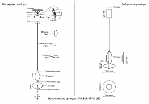 Подвесной светильник Crystal Lux QUASAR SP7W LED AMBER
