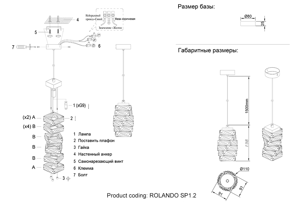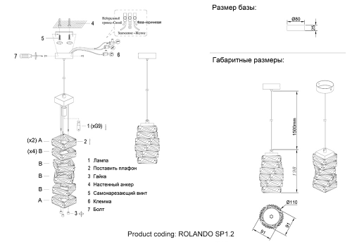 Подвесной светильник Crystal Lux ROLANDO SP1.2 CHRONE