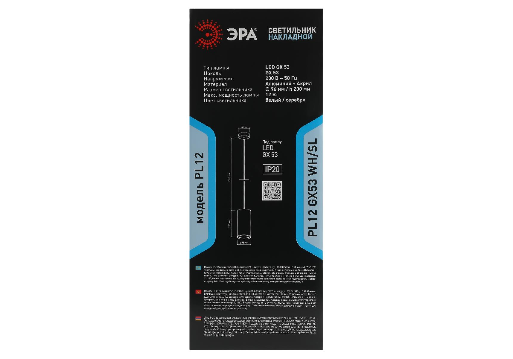 Подвесной светильник ЭРА PL12 GX53 WH/SL Б0048543