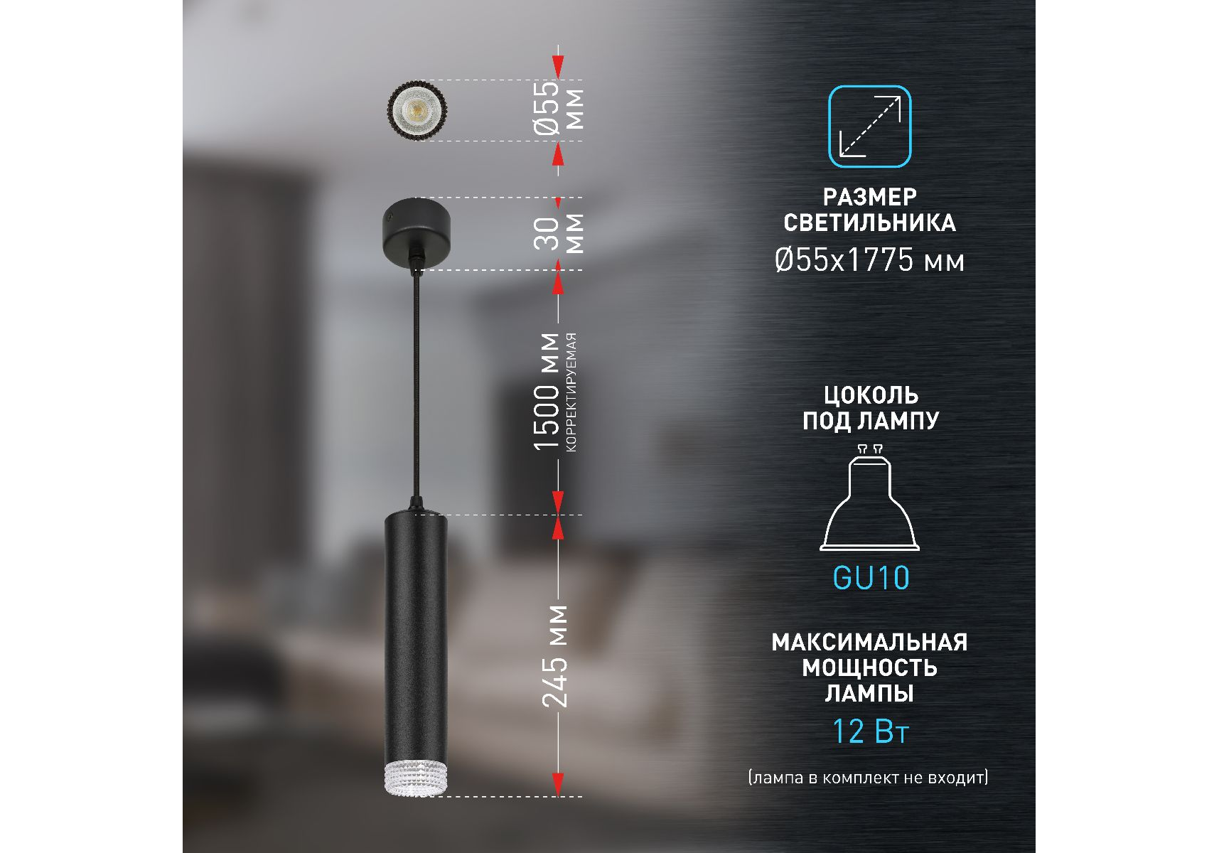 Длина подвеса, мм:
