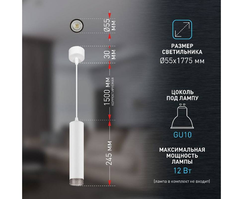 Длина подвеса, мм: