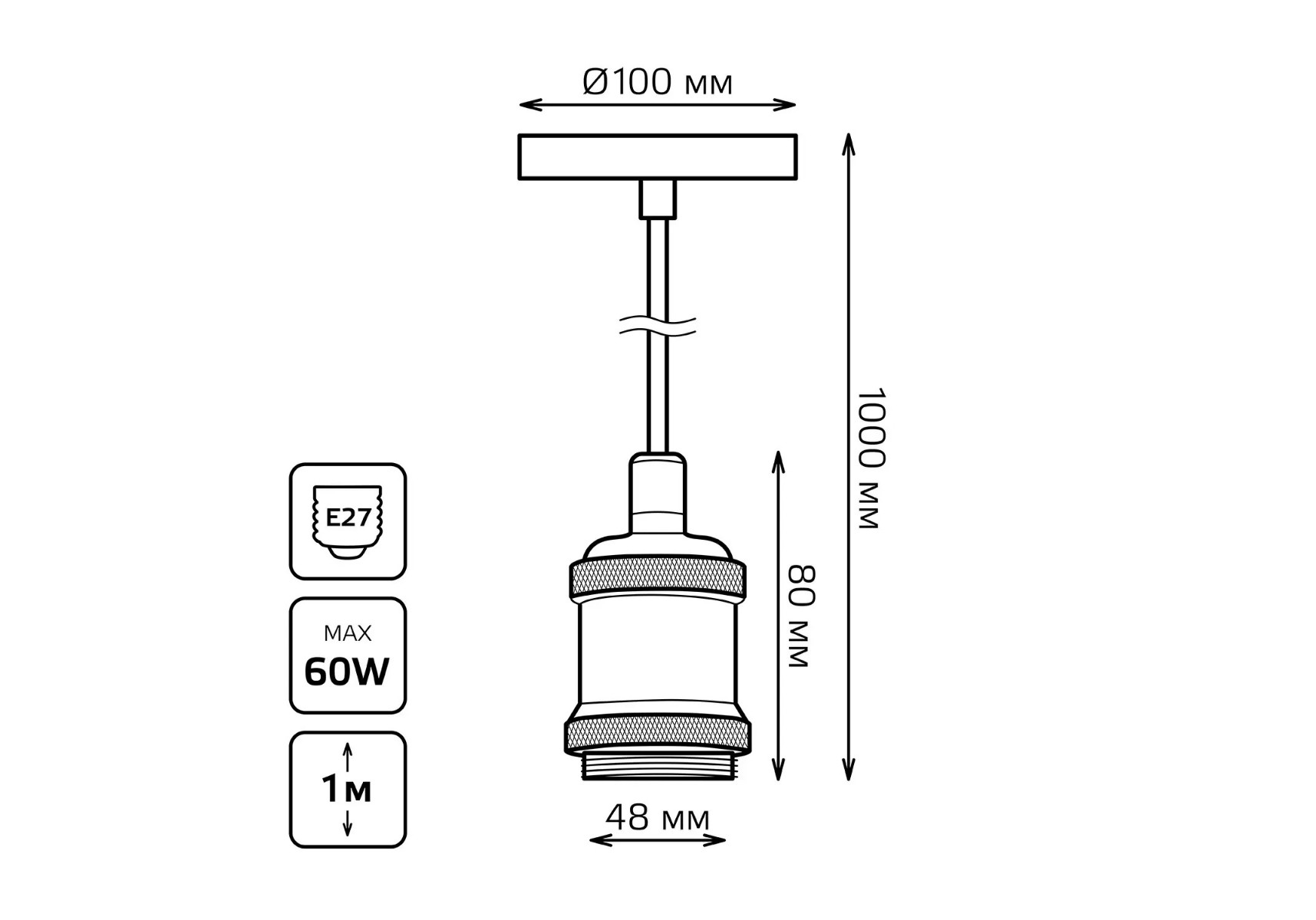Длина подвеса, мм: