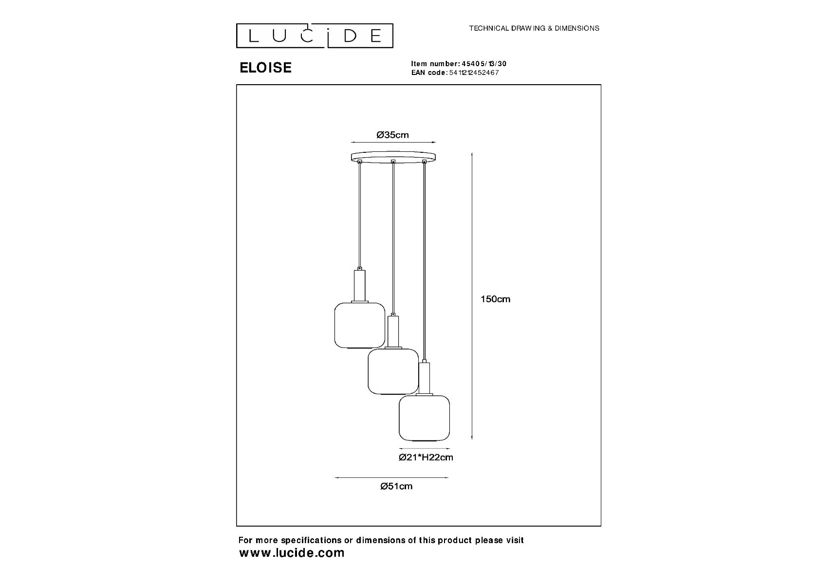 Подвесной светильник Lucide Eloise 45405/13/30