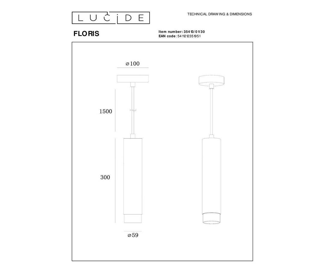 Подвесной светильник Lucide Floris 35413/01/30