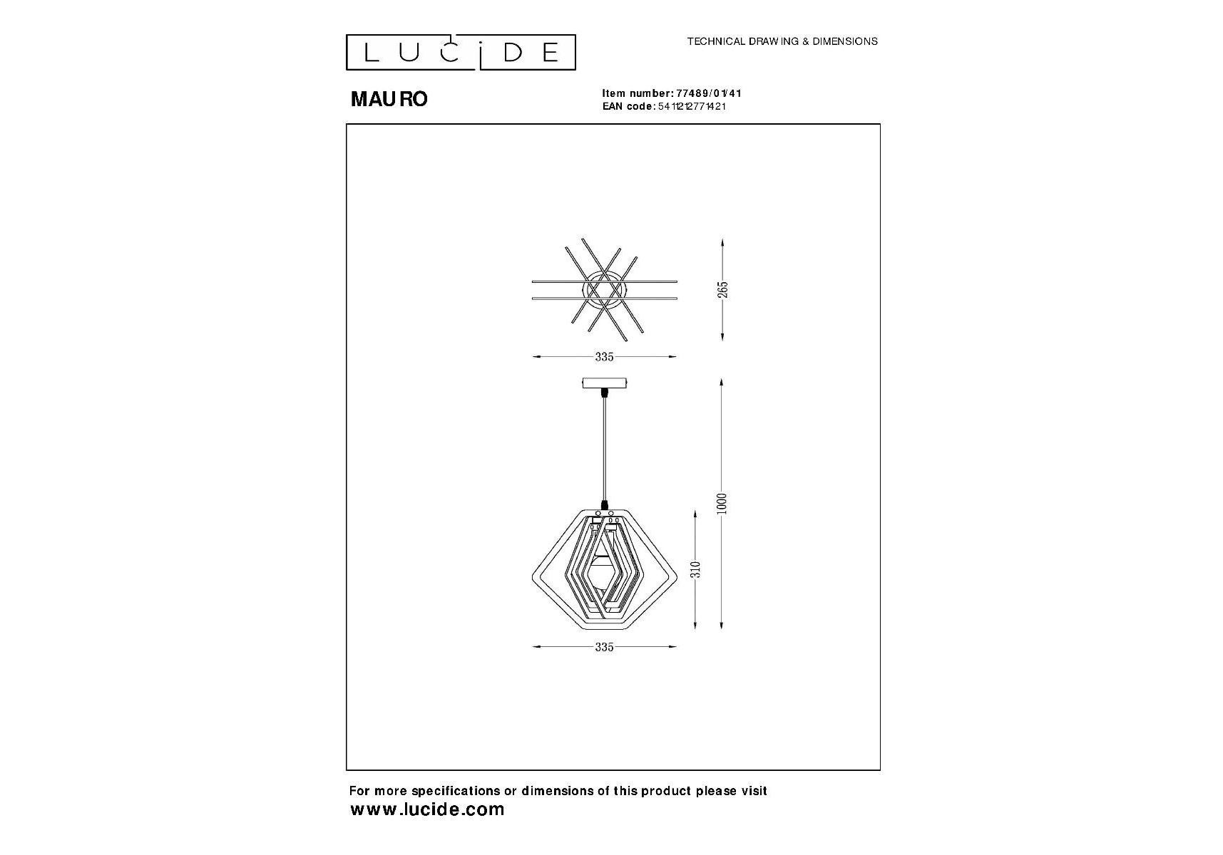 Подвесной светильник Lucide Mauro 77489/01/41