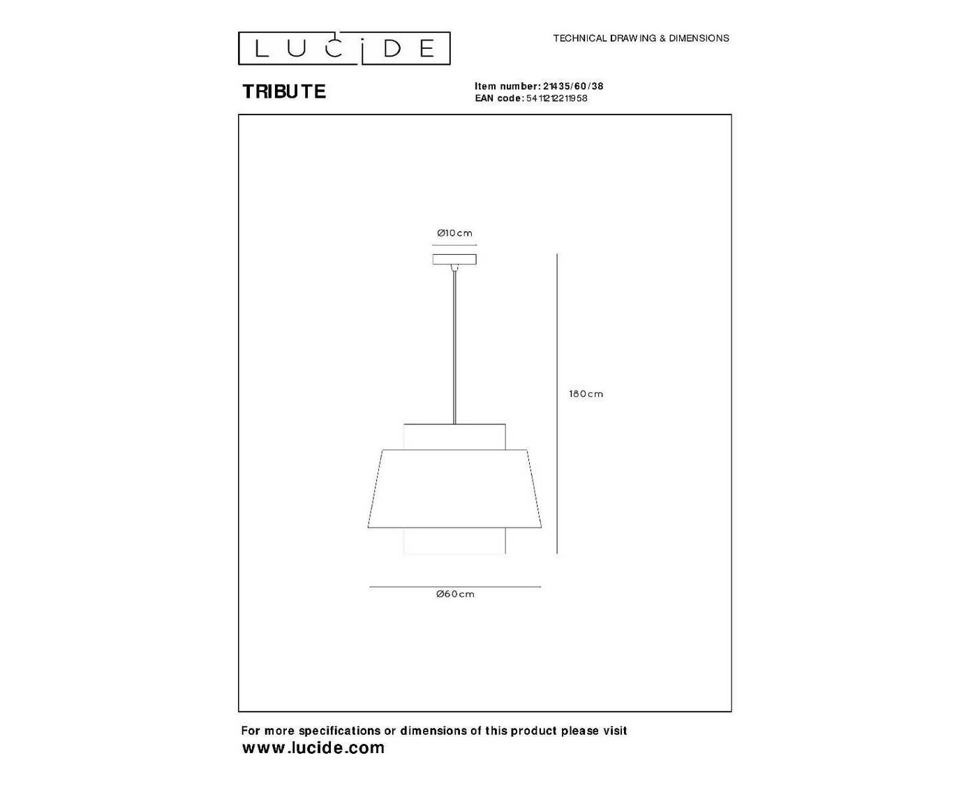 Подвесной светильник Lucide Tribute 21435/60/38