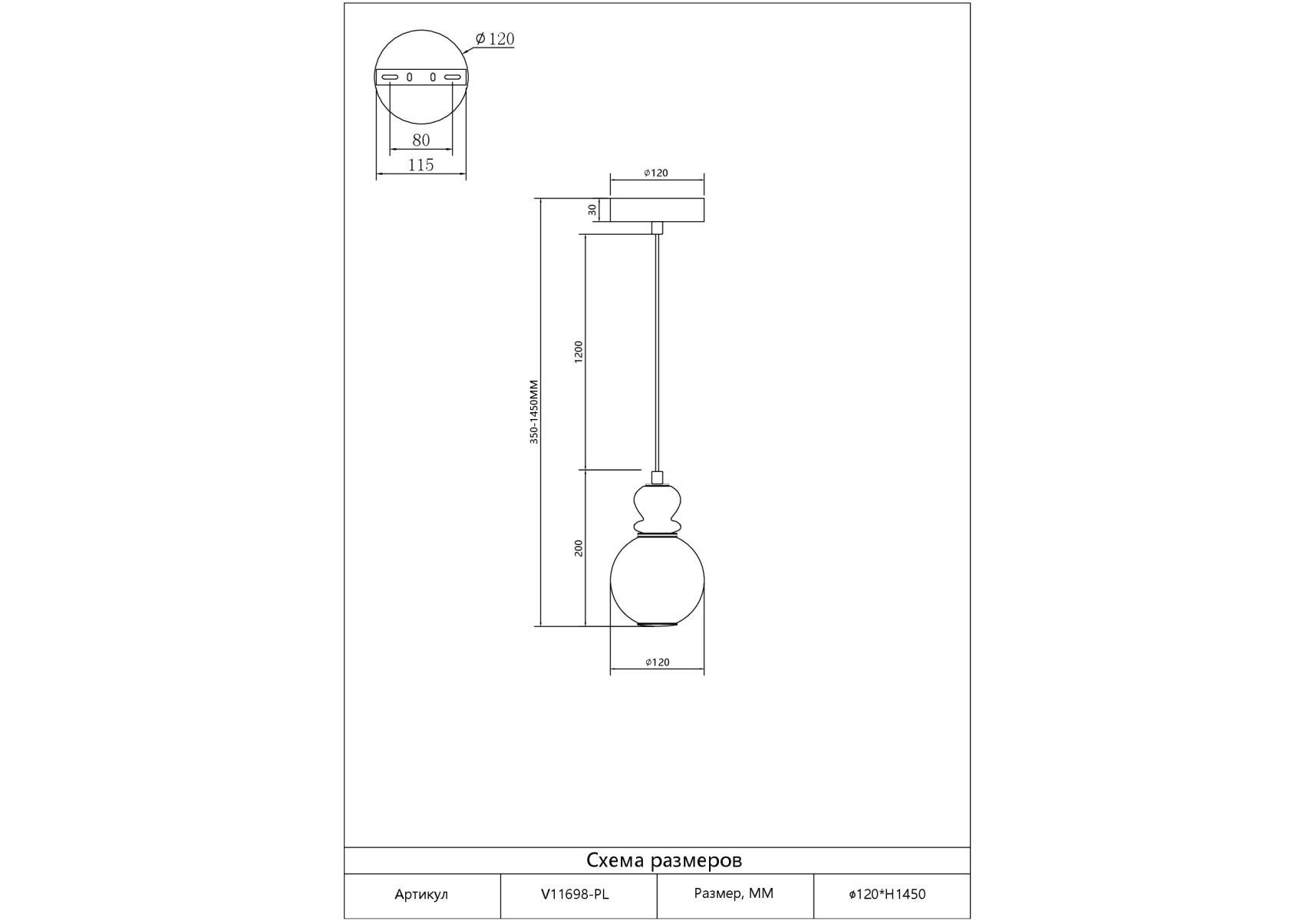 Длина подвеса, мм: