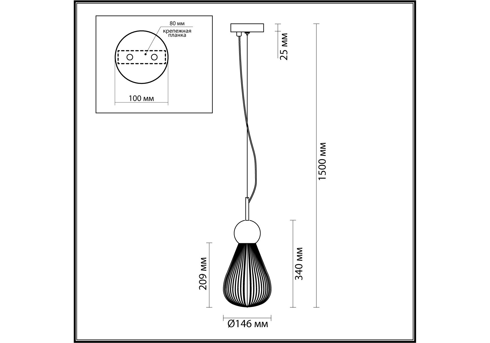 Длина подвеса, мм: