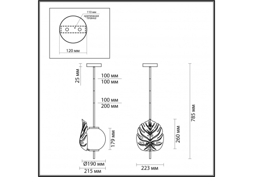 Длина подвеса, мм: