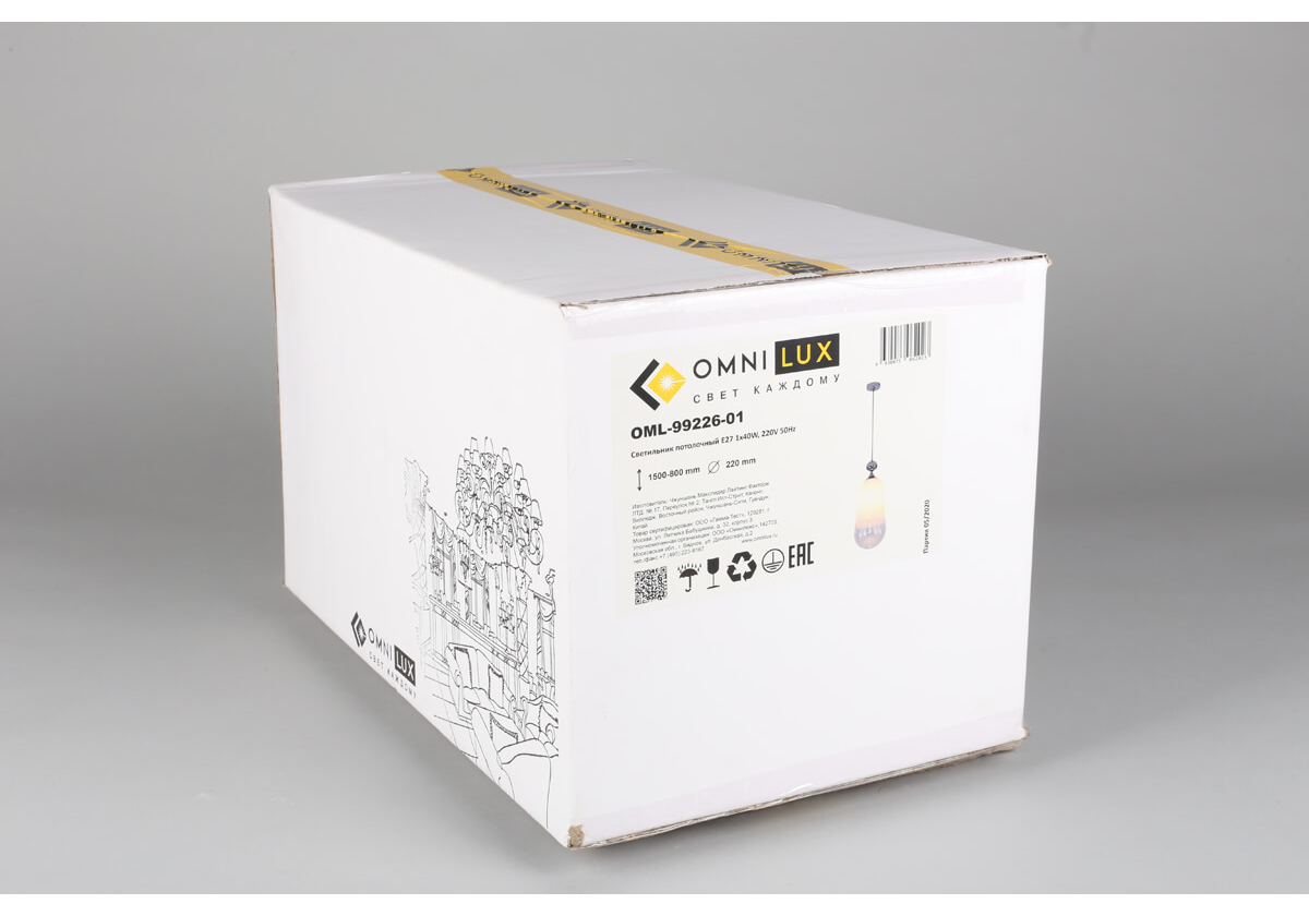 Подвесной светильник OML-99226-01 Sovareto от известного бренда Omnilux прекрасно подойдет для кухни в ретро-стиле. Каркас из металла с хромированным покрытием, 1 лампа с цоколем E27 и прозрачного вида стеклянный плафон придают данной модели необыкновенный внешний вид. Светильник может осветить площадь до 2 м2, при использовании рекомендуемых производителем или эквивалентных по световому потоку LED ламп (в комплект не входят). Модель OML-99226-01 Sovareto можно устанавливать на натяжной потолок с использованием стандартной монтажной планки. Родиной бренда Omnilux является КИТАЙ. Заявленный производителем Omnilux гарантийный срок составляет 2 года. Подвесной светильник Omnilux Sovareto OML-99226-01 будет отличным выбором для покупки в интернет-магазине ГиперСвет. Мы оперативно доставим Ваш заказ по Калуге, Москве или в любой другой регион России.