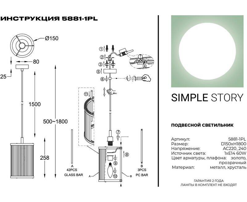 Подвесной светильник Simple Story 5881-1PL