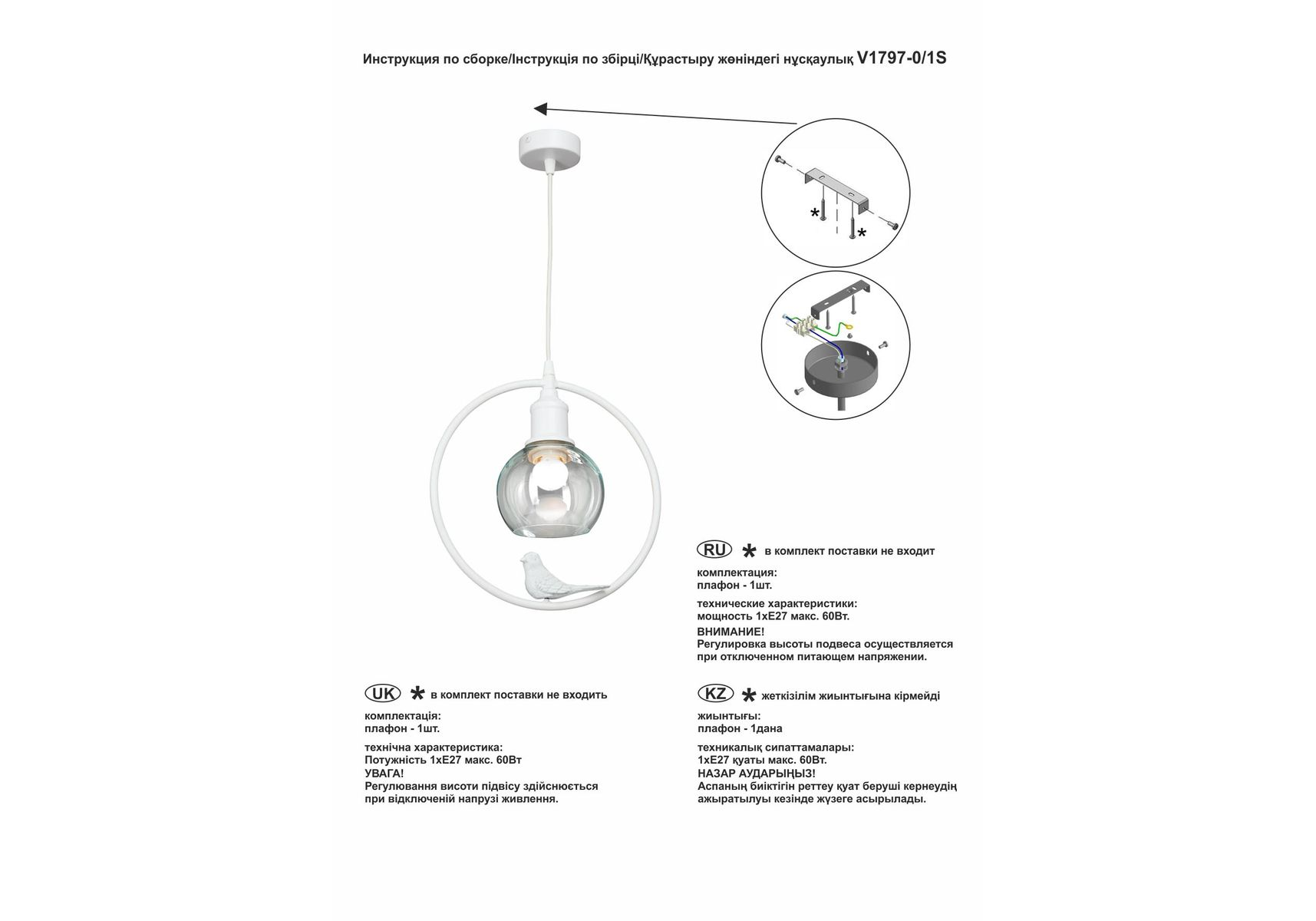 Подвесной светильник Vitaluce V1797-0/1S