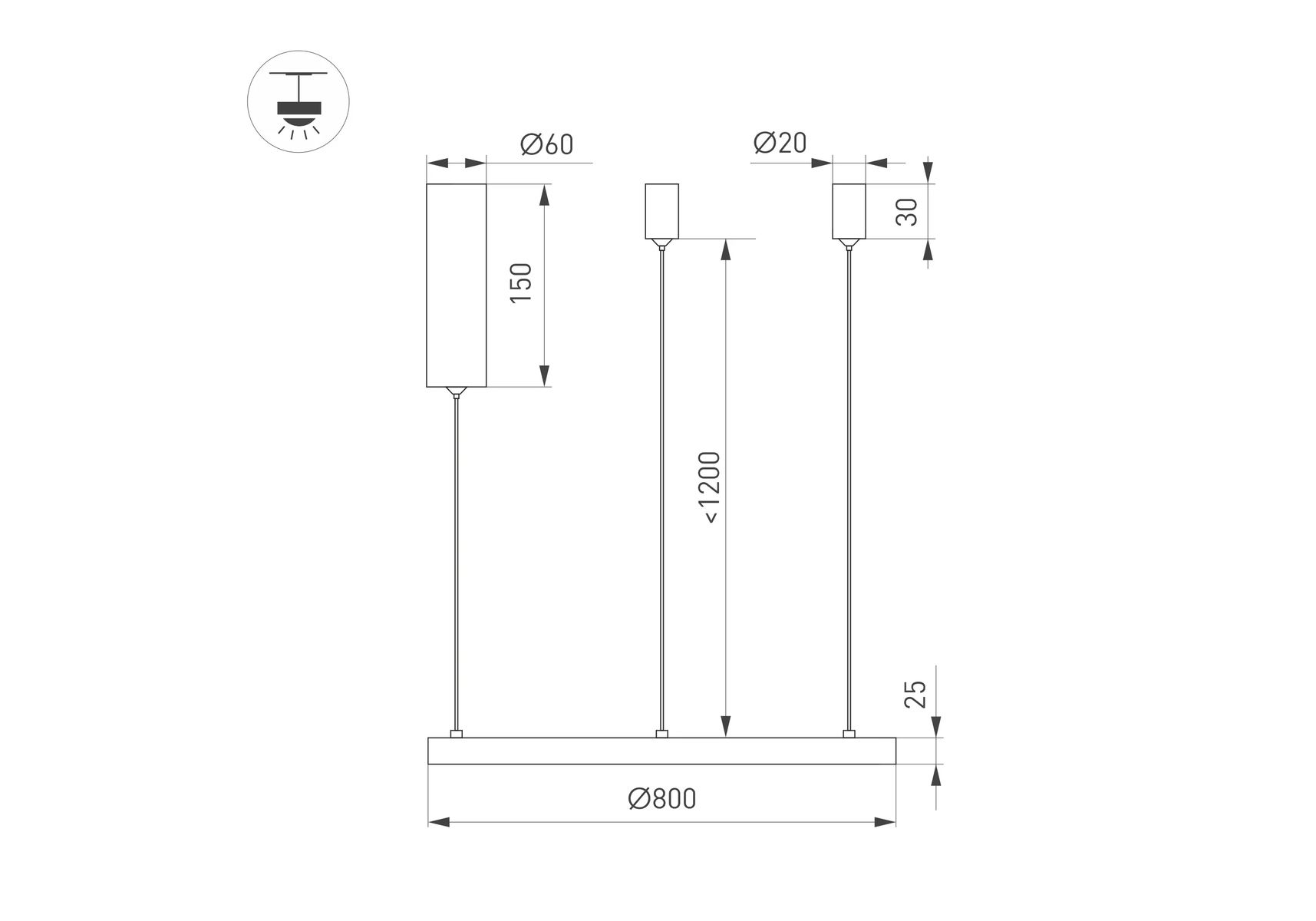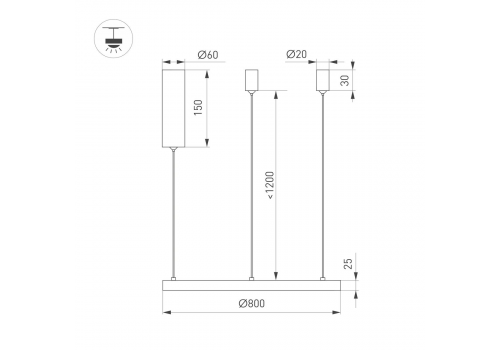 Длина подвеса, мм: