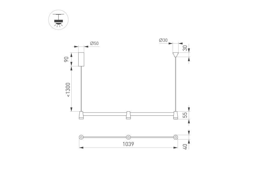 Длина подвеса, мм: