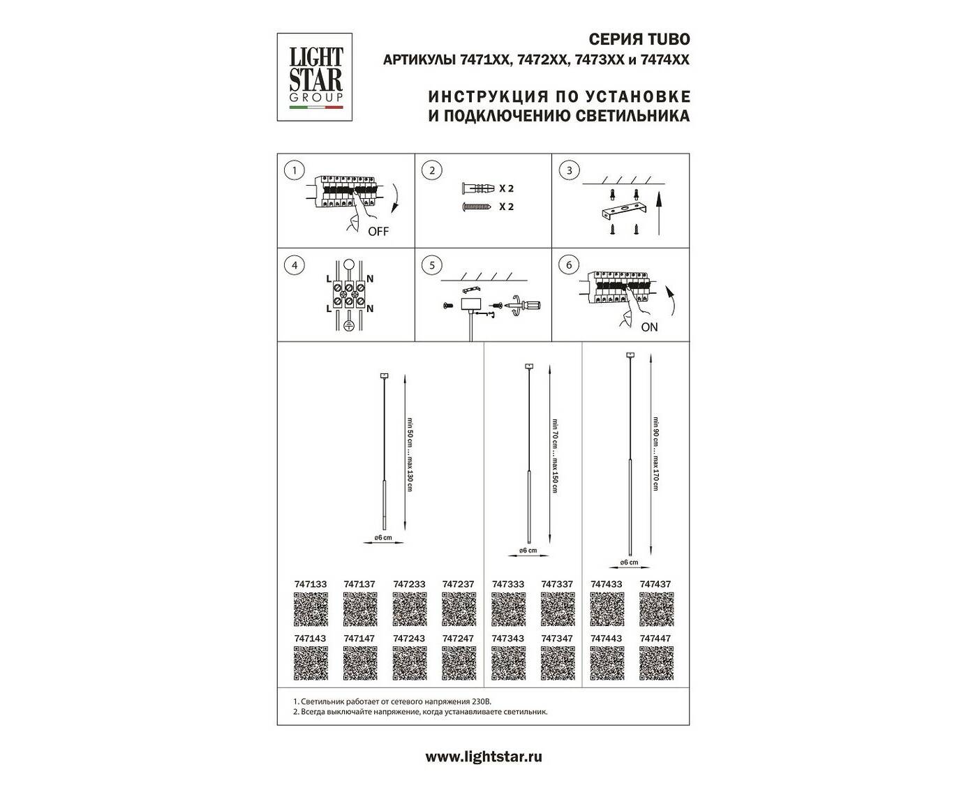 Длина подвеса, мм: