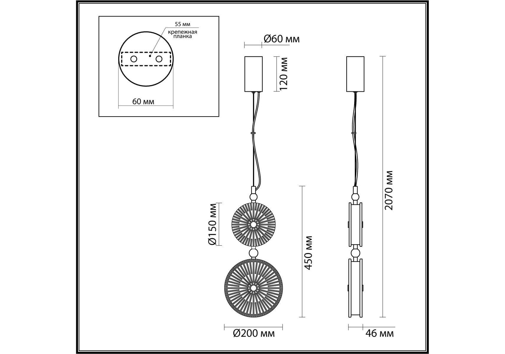Длина подвеса, мм: