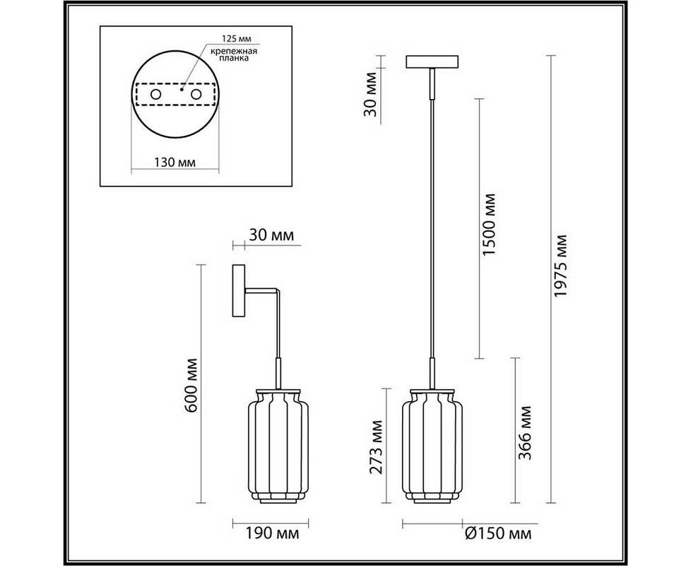 Длина подвеса, мм: