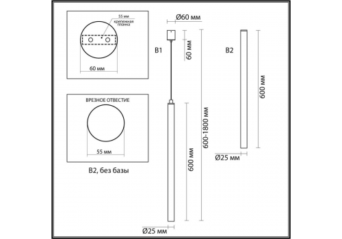 Длина подвеса, мм: