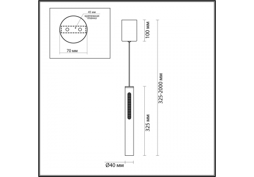 Длина подвеса, мм:
