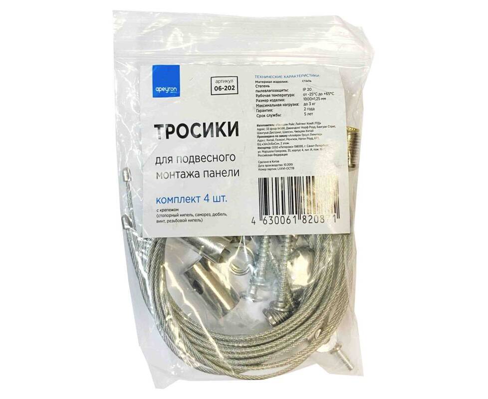 Тросики для подвесного монтажа панели Apeyron 4шт 06-202