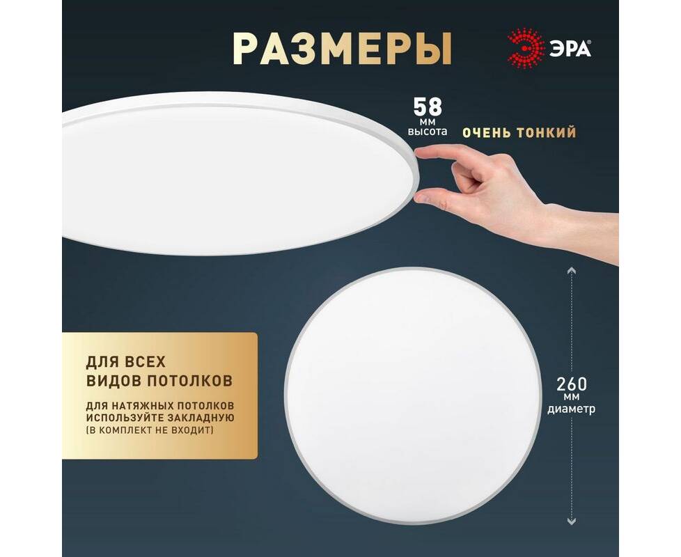 Потолочный светильник Эра Классик без ДУ SPB-6 WH 24W-5K Slim Base