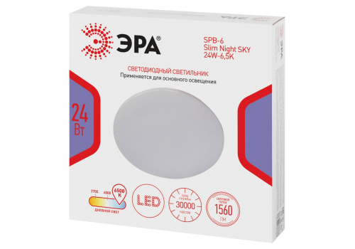 Потолочный светильник Эра Классик без ДУ SPB-6 WH 24W-6,5K Slim Night SKY