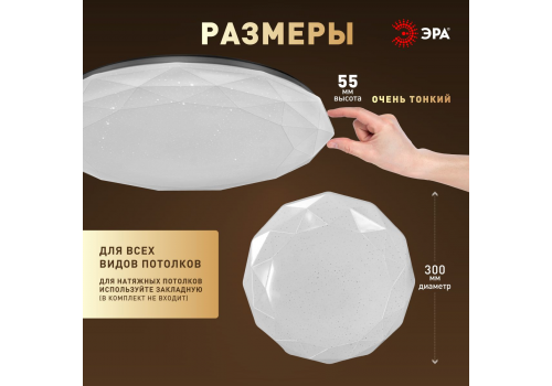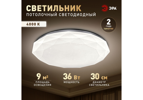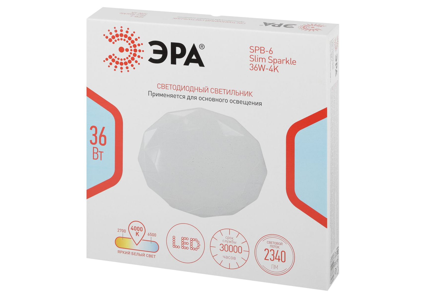 Потолочный светильник Эра Классик без ДУ SPB-6 WH 36W-4K Slim Sparkle
