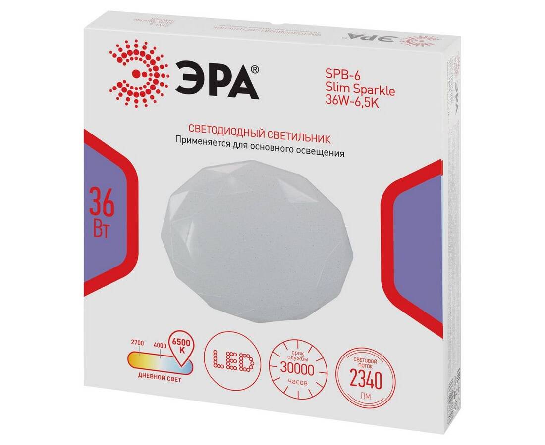 Потолочный светильник Эра Классик без ДУ SPB-6 WH 36W-6,5K Slim Sparkle