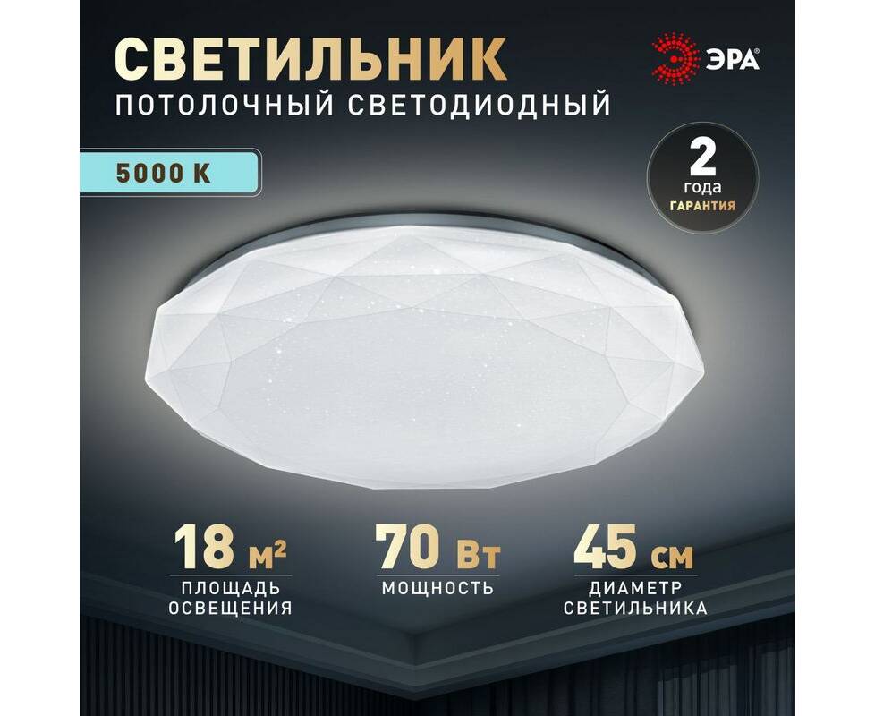 Потолочный светильник Эра Классик без ДУ SPB-6 WH 70W-5K Slim Sparkle