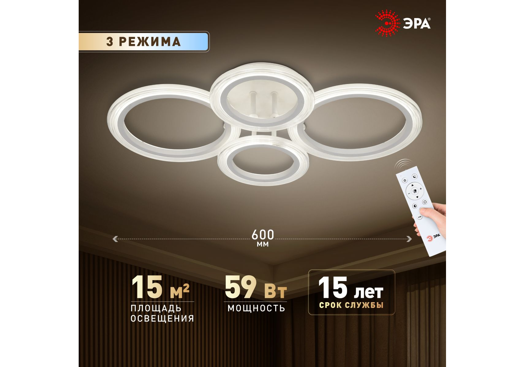 Потолочный светильник Эра Модерн Ring CLL-1-59W 3K-6,5K RC WH