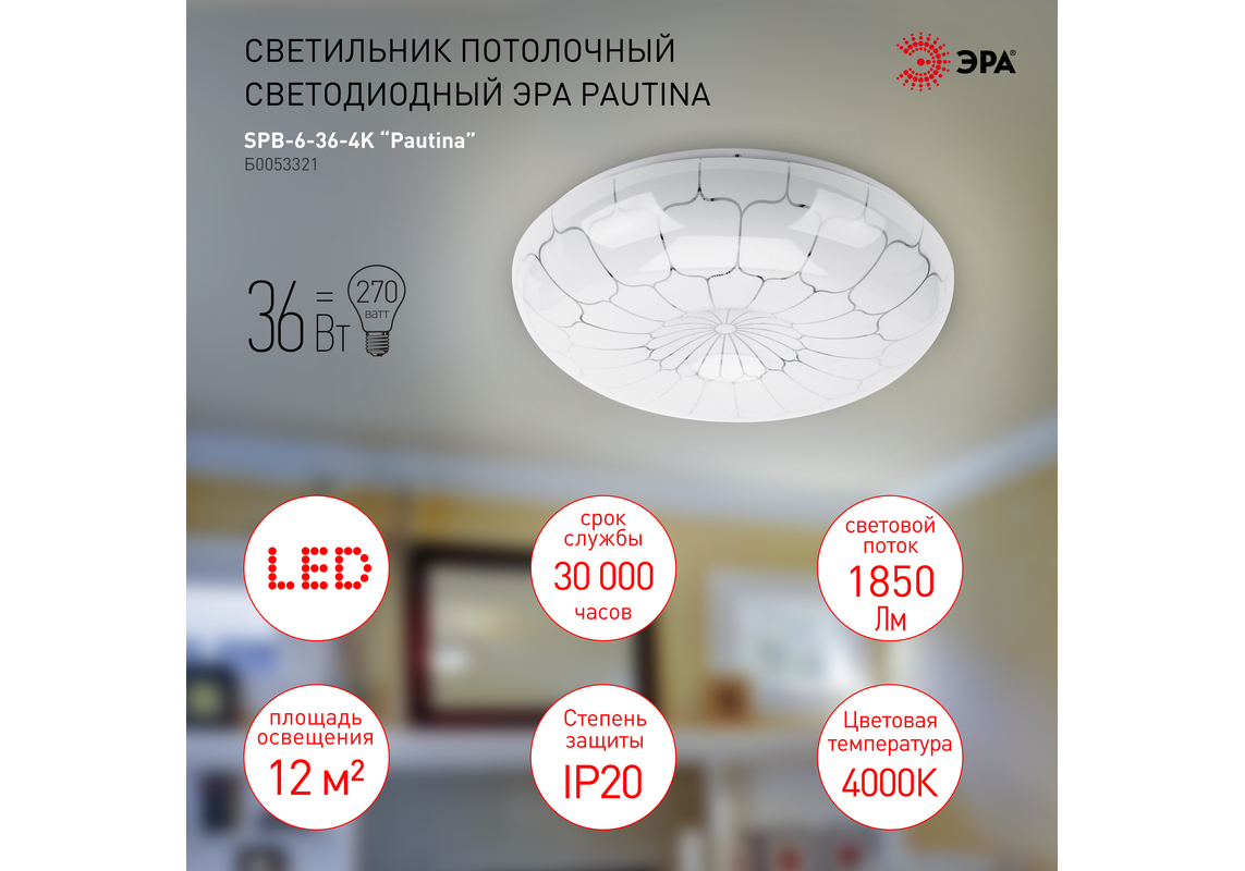 Потолочный светильник Эра SPB-6-36-4K Pautina Б0053321