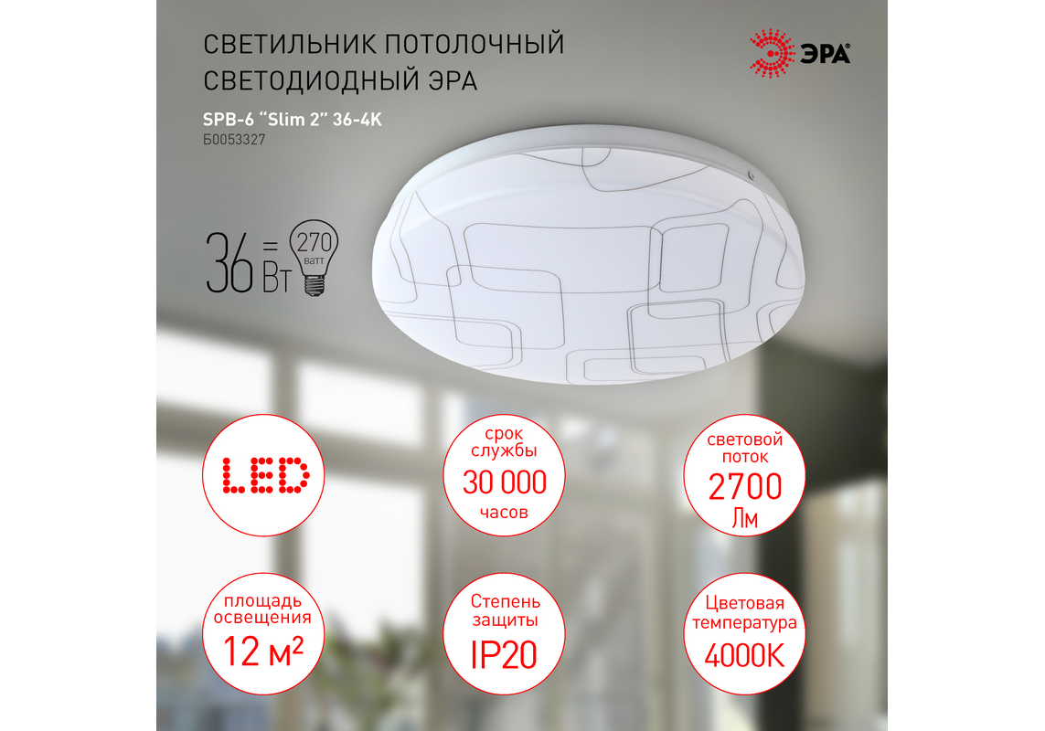 Потолочный светильник Эра SPB-6 Slim 2 36-4K Б0053327