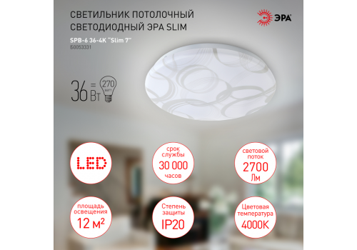 Потолочный светильник Эра SPB-6 Slim 7 36-4K Б0053331