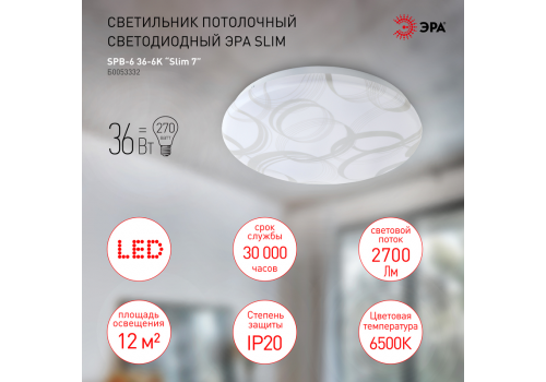 Потолочный светильник Эра SPB-6 Slim 7 36-6K Б0053332